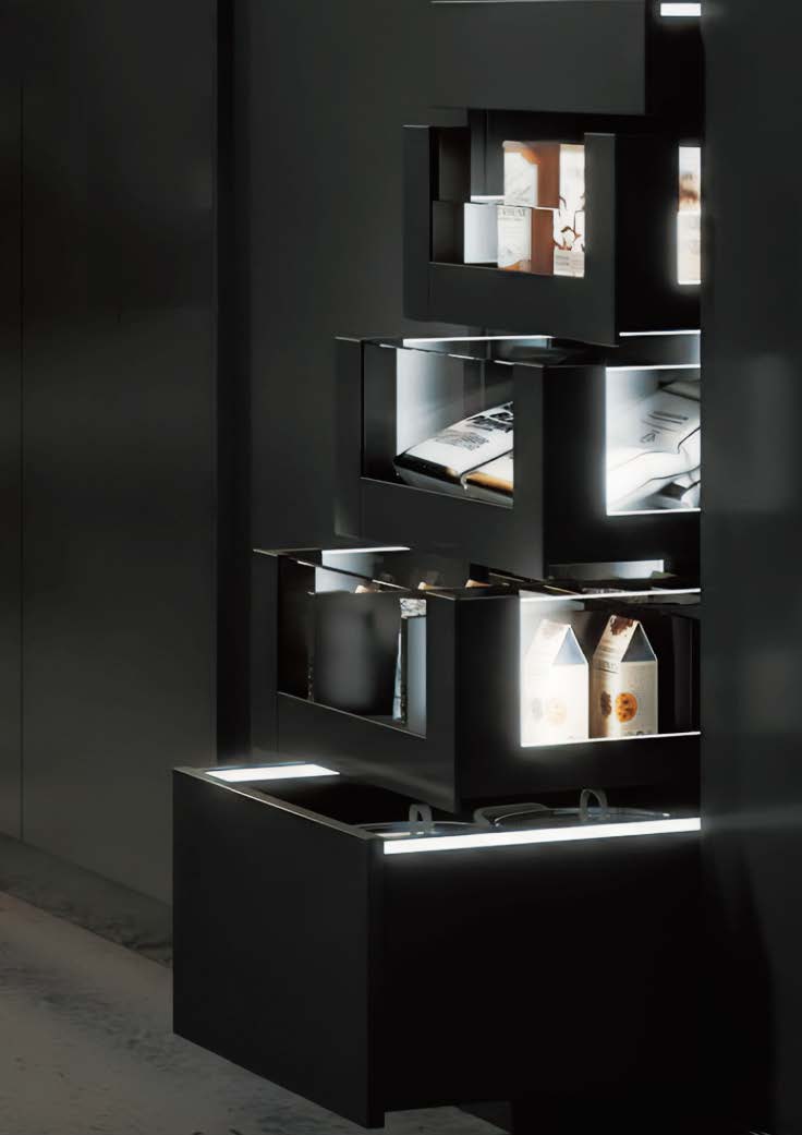 臻我超薄抽屜系統靈感來自個性化的裝潢趨勢,這些纖細輕薄的抽牆以其尖端工藝和令人